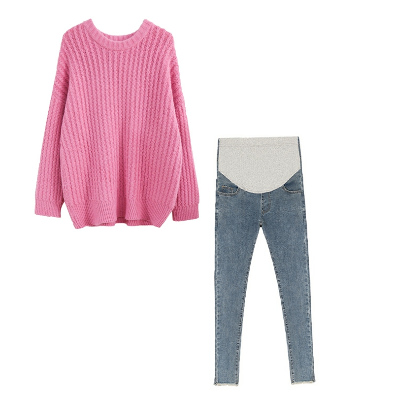 Maternity sweater mid-length autumn and winter pink knitted 2021 New Year's new spring clothes Chinese New Year maternity suit two-piece set
