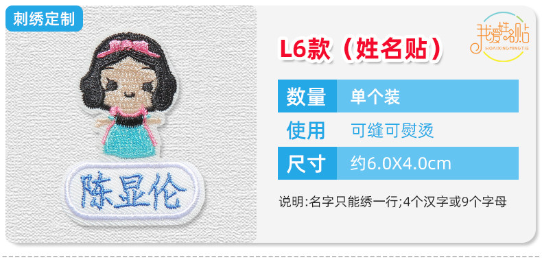 Name stickers embroidery kindergarten baby name stickers children's princess name cloth stickers can be sewn and washable name stickers