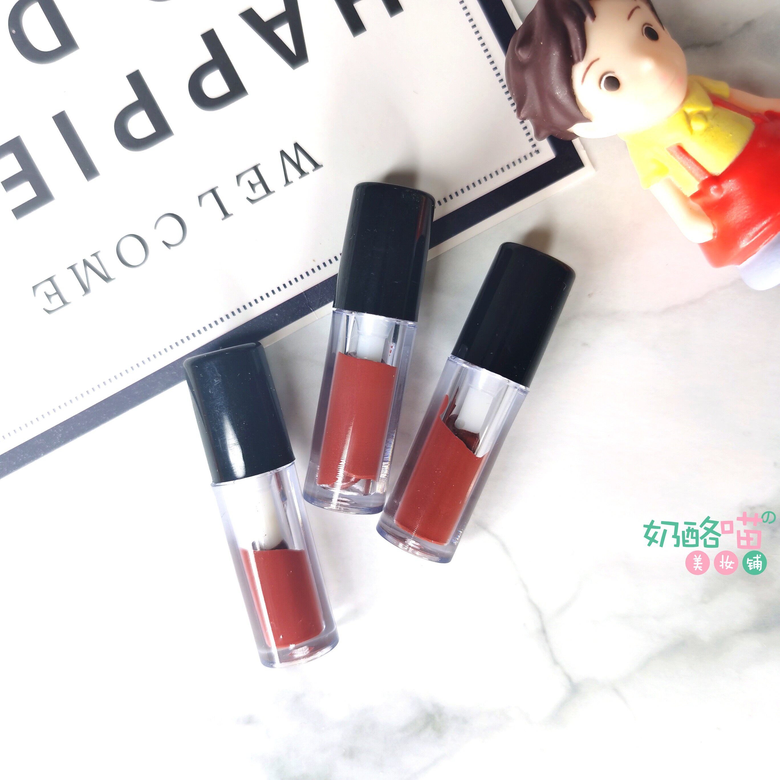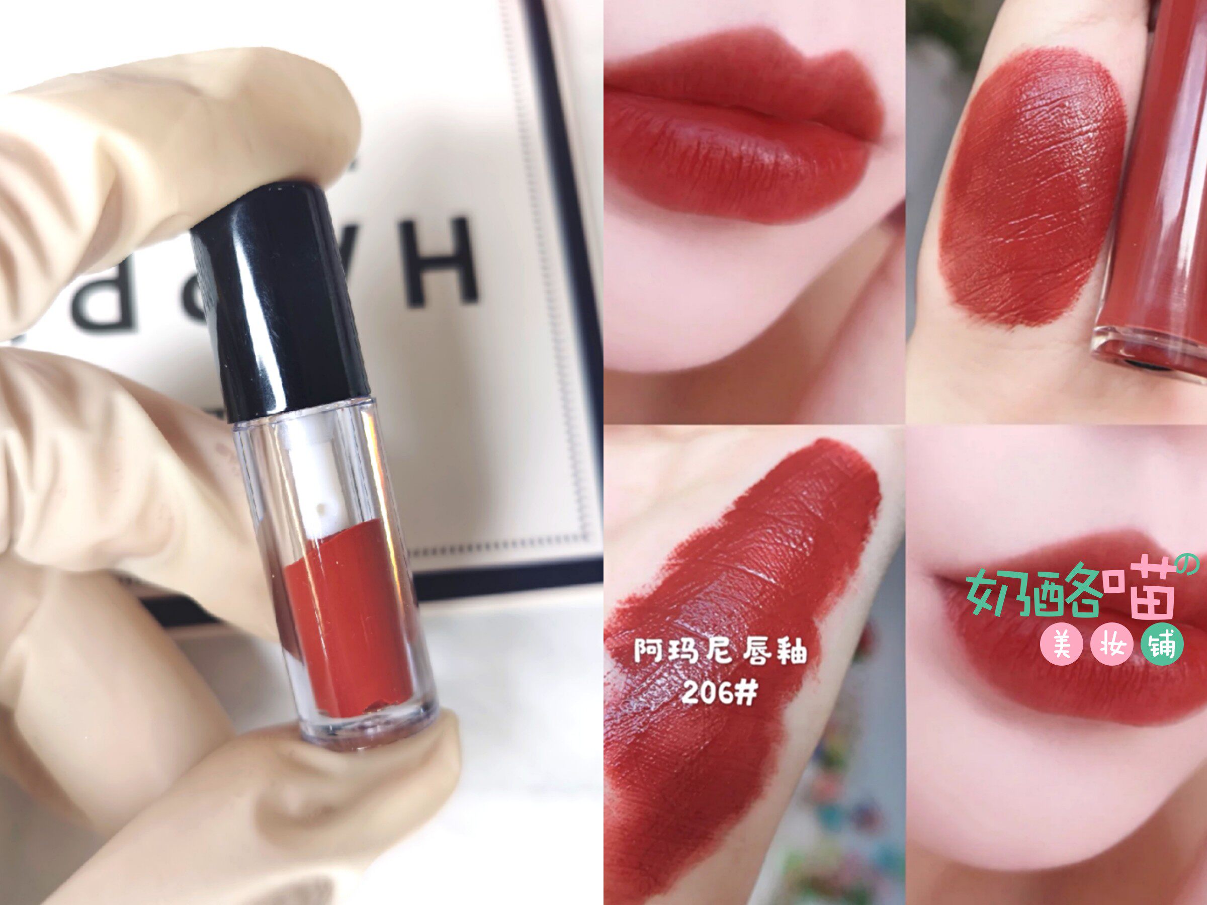 A Mini red tube lip glaze new color 214 velvet matte lipstick 205 206 405 white and earthy sample