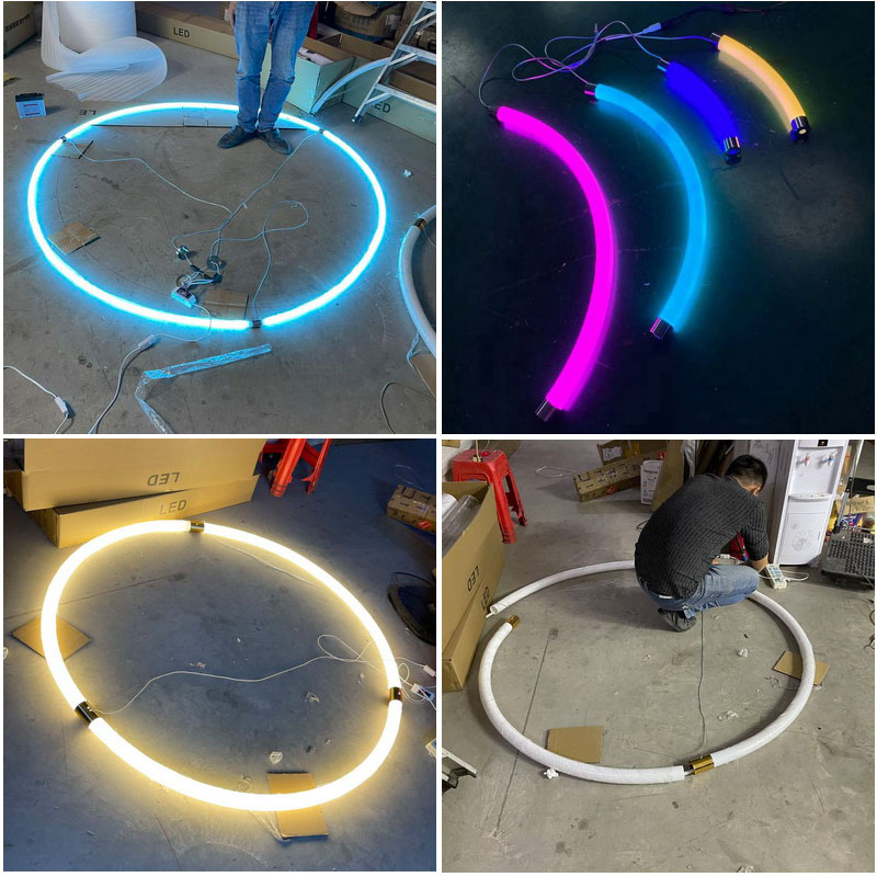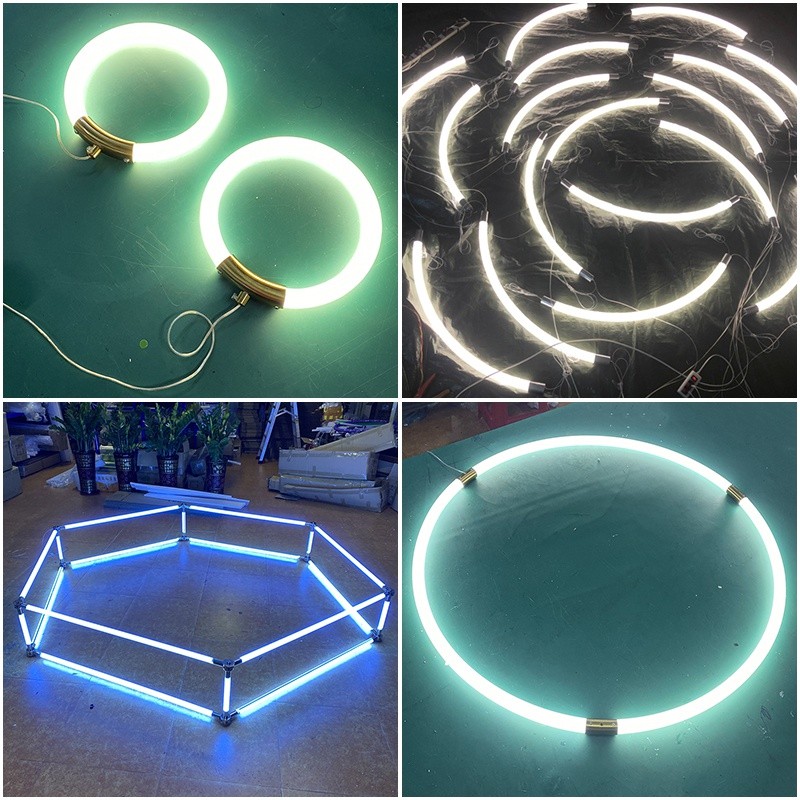360-degree luminous Led circular linear acrylic baking bending ring lighting tube customized styling splicing horizontal vertical suspension wire