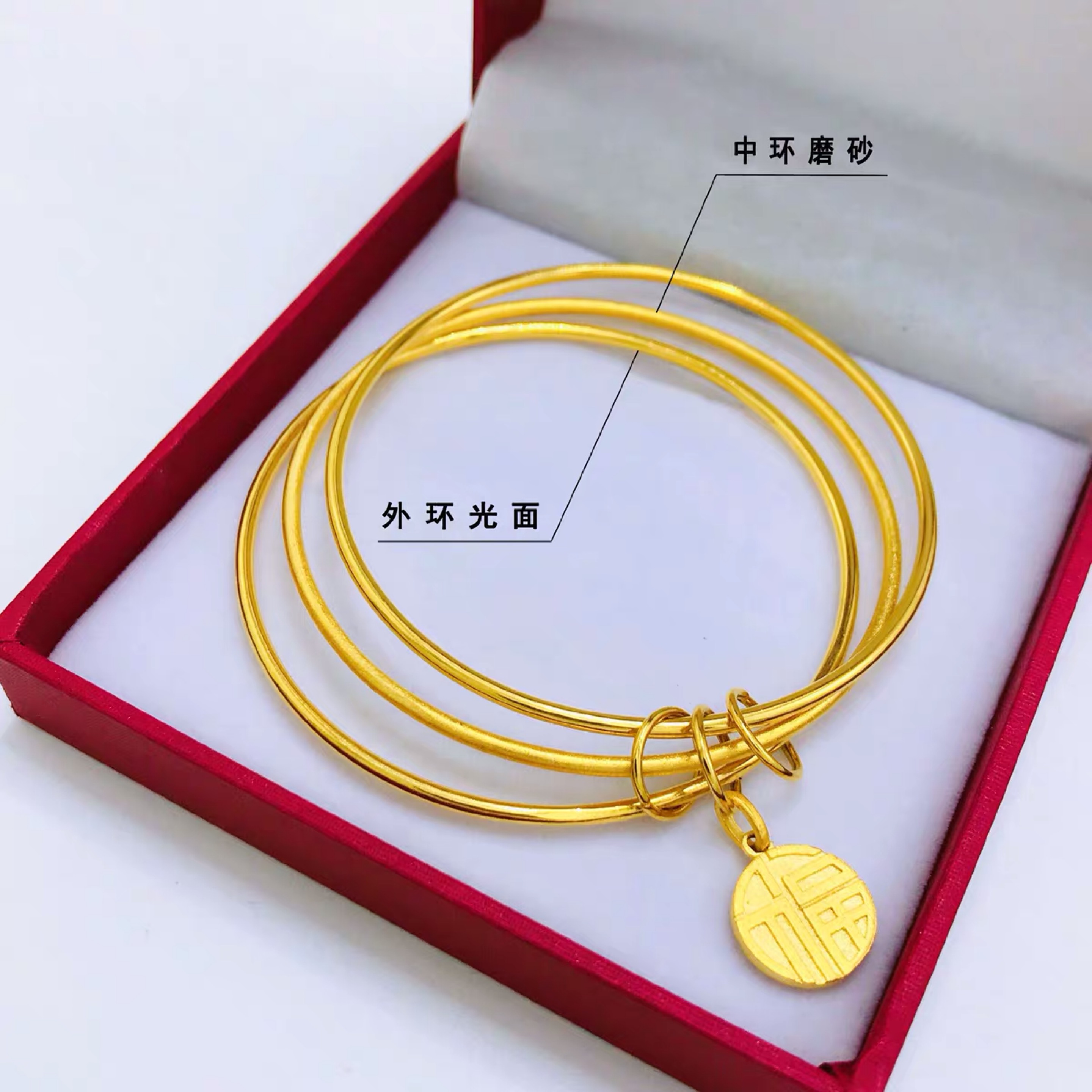 New Sansheng Sansui Su ring gold bracelet female matte ancient method thin ring Vietnamese sand gold 24K jewelry 999 does not fade
