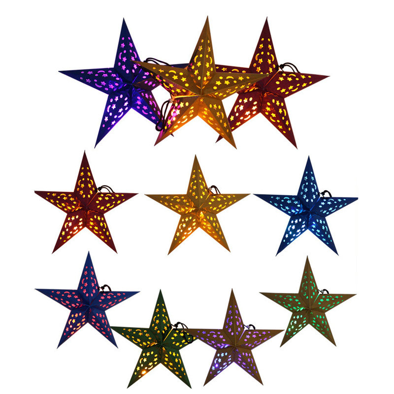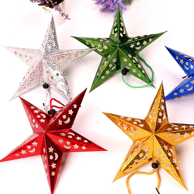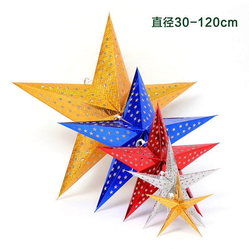Christmas decorations three-dimensional laser paper pentagram lampshade shop window suspended ceiling decoration luminous star pendant