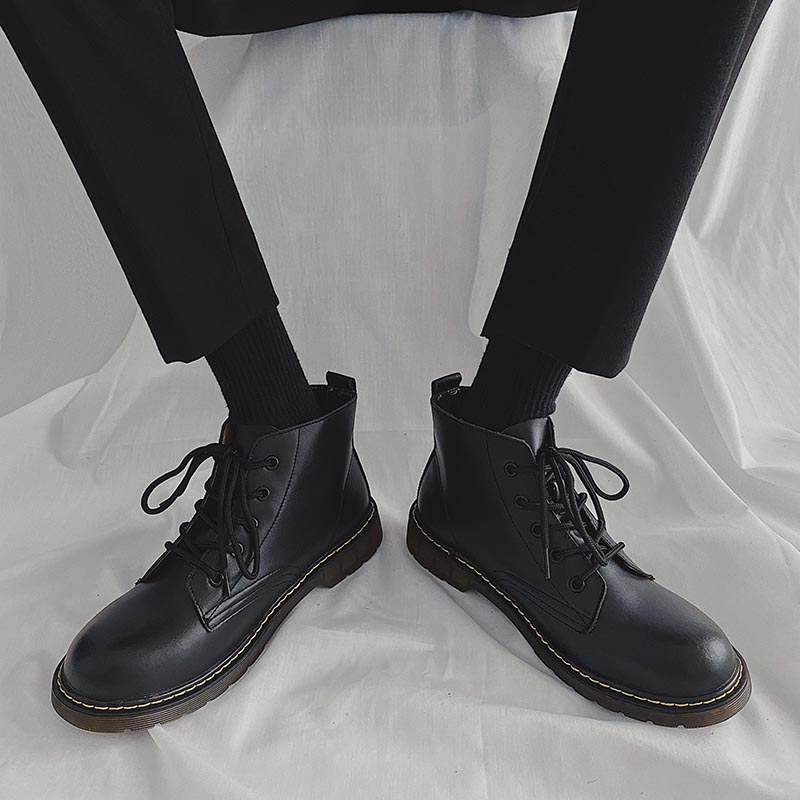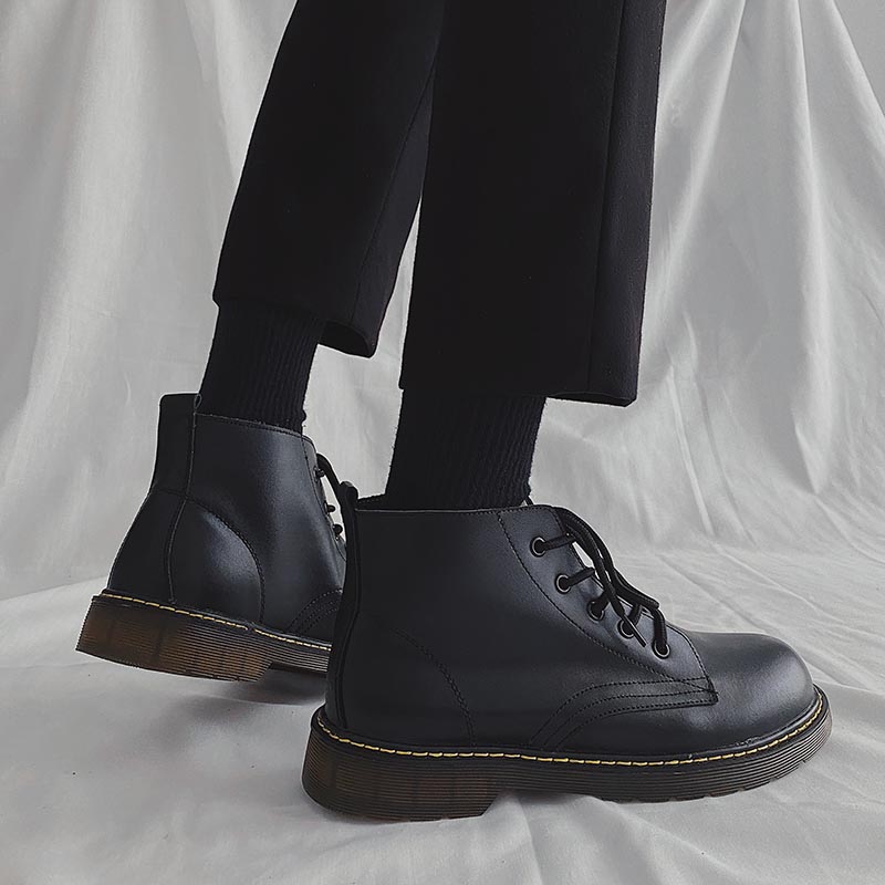 Genuine leather Martin boots men's high-top British style all-match Korean version leather boots couple retro motorcycle mid-top boots