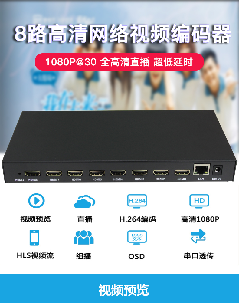 8-way rack-mount encoder live streaming rtmprtrtsp conference monitoring acquisition device connected to NVR prison