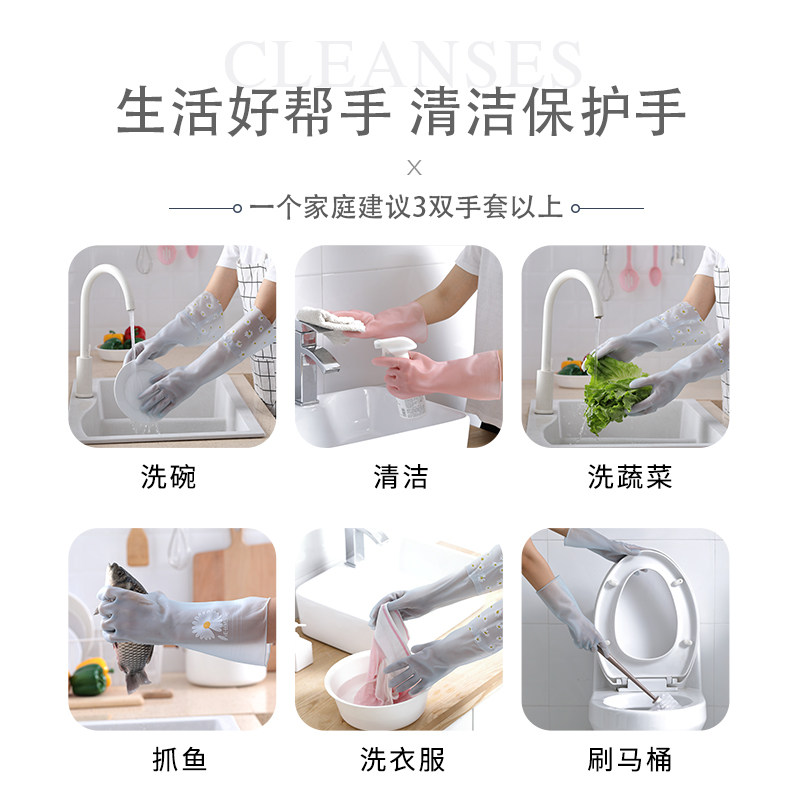 Thickening Durable home Kitchen Dishwashing Gloves Women's Business Winter Plus Suede CLOTHING Clothing Rubber Leather Waterproof