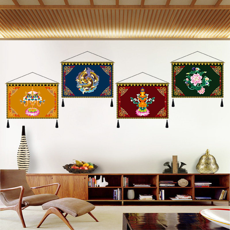 Banner Auspicious Eight Treasure Tibetan cloth Art hanging painting room bedside hanging cloth Minjuku hotel dining room background tapestry