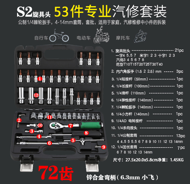 53 S2 24 Teeth Straight handle Orange gray 53 S2 72 teeth Tricolor black red handle 53 S2 72 teeth Zinc alloy green handle 53 S2 72 teeth Curved handle Yellow Handle