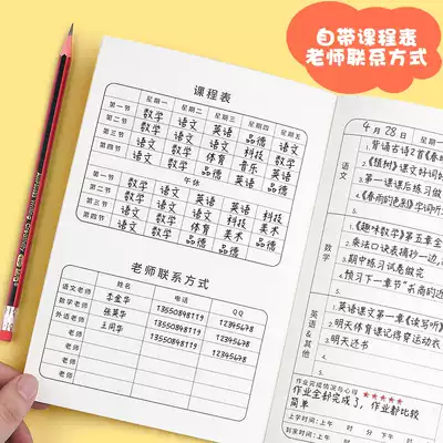 Primary school homework registration book, homework, this record copy, work homework record book, first grade classroom notebook, love home school contact book, copy home children thickened