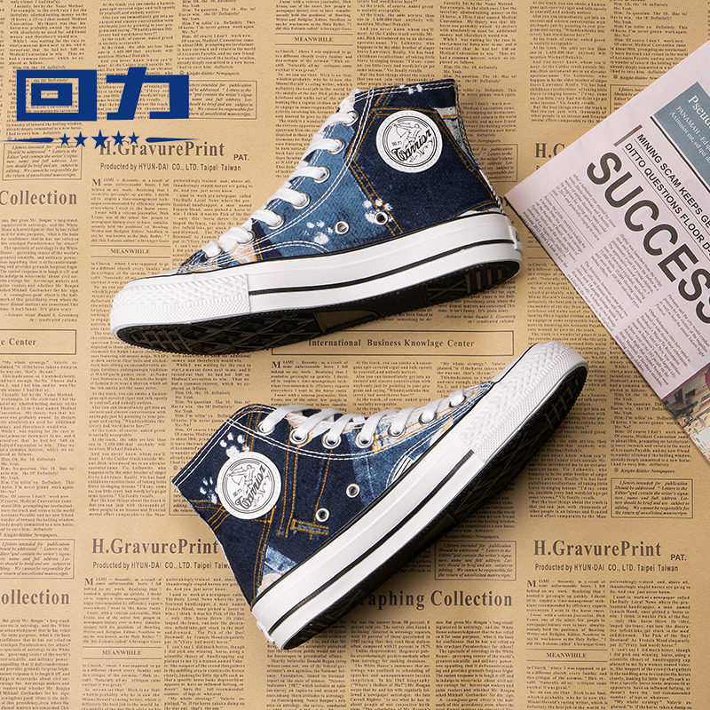 Baili high - gang canvas shoes men's shoes 2022 autumn and winter new irregular pattern fashion couple sneakers