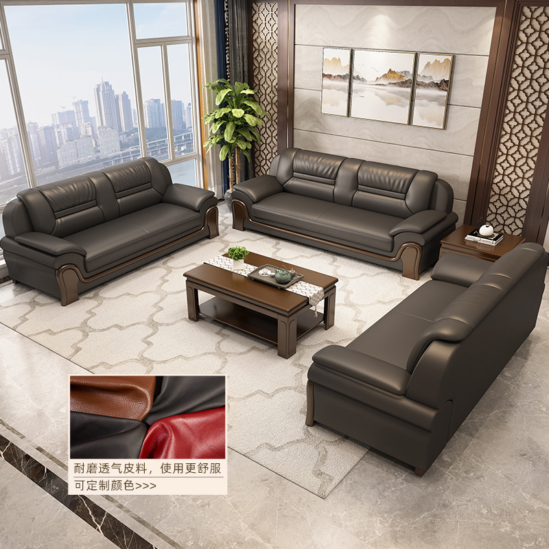 Office Sofa Brief Modern Business Chinese Genuine Leather Club Trio REST INDUSTRIAL WIND FURNITURE TEA TABLE COMBINATIONS