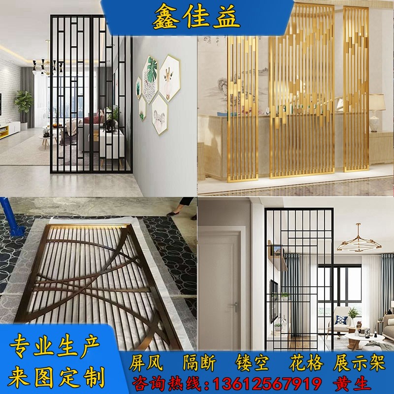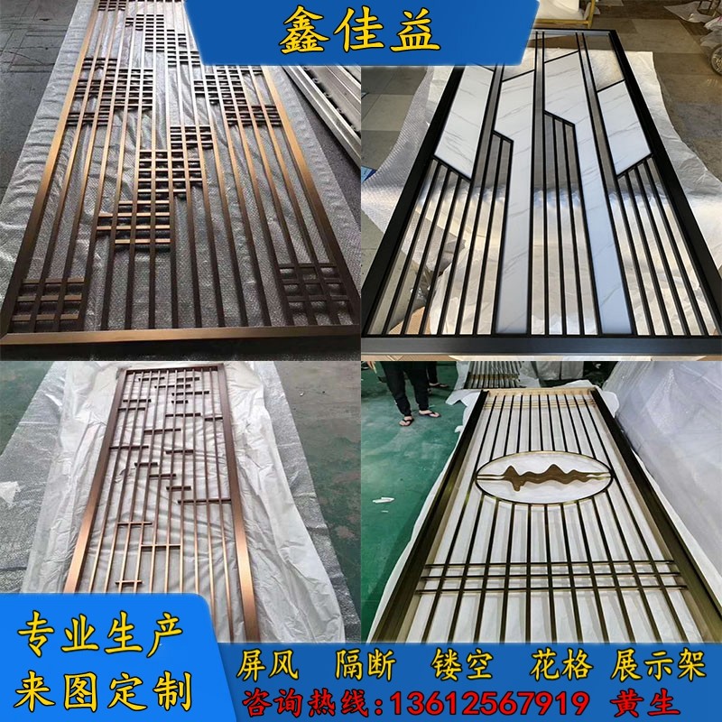 Stainless steel screen partition custom living room modern simple light luxury new Chinese lattice rose metal through the flower cutout
