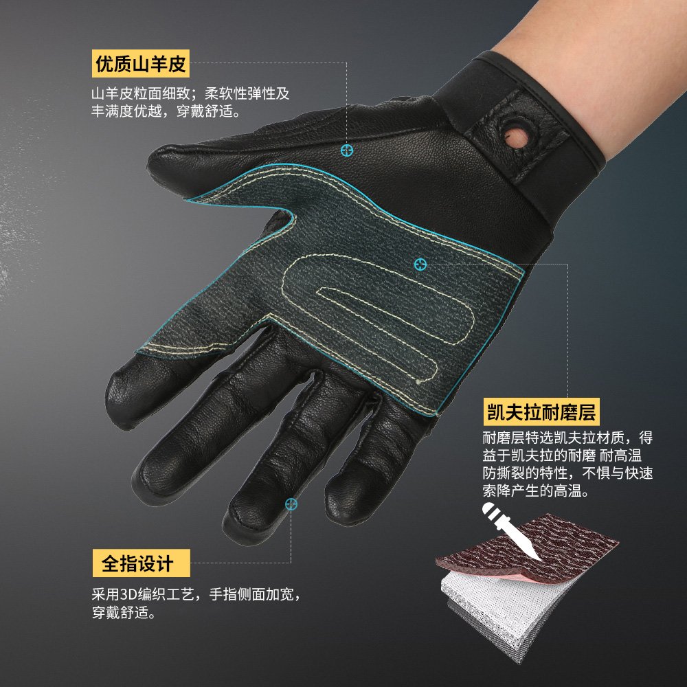 Xinda outdoor abseiling gloves Sheepskin abseiling gloves Army training special abseiling cave exploration SRT abseiling equipment
