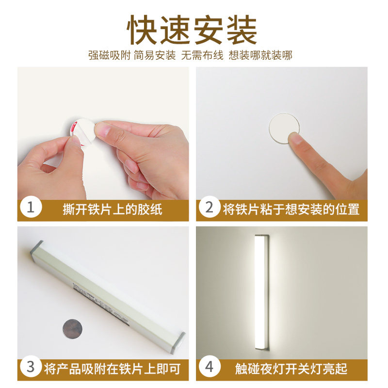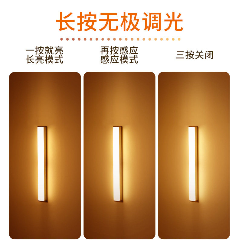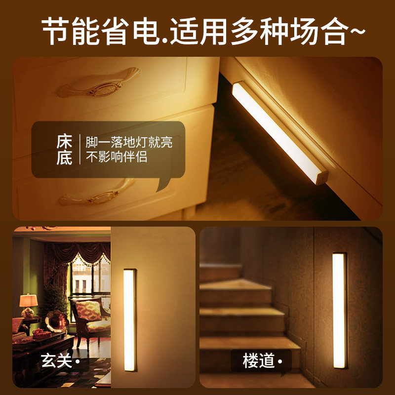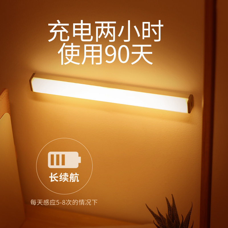 Intelligent induction lamp with light bar Wireless self-adhesive cabinet wardrobe kitchen wiring-free unplugged charging Open the door that is bright