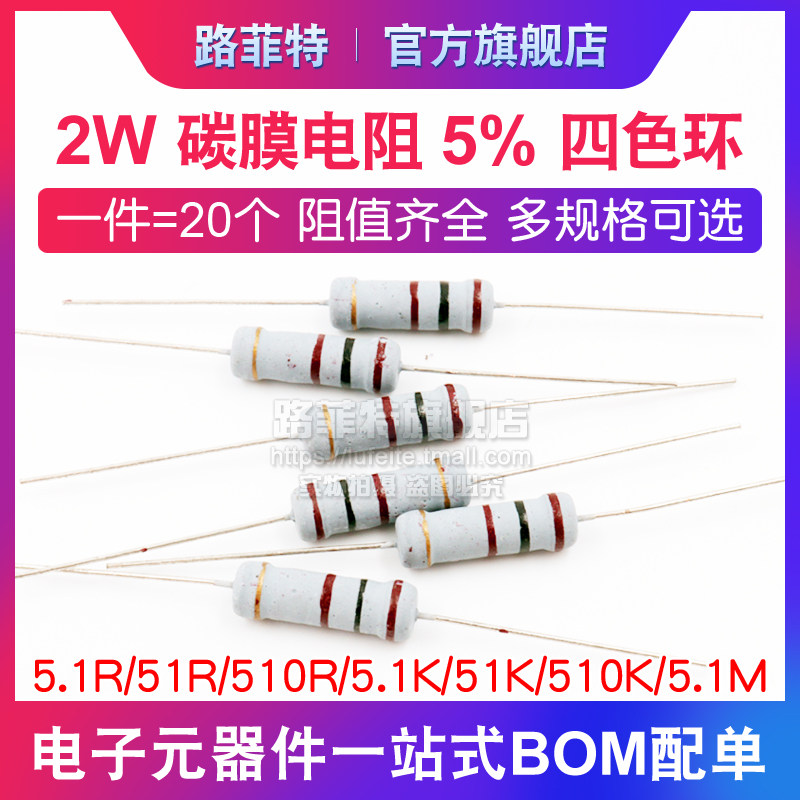 2W carbon film resistor 5% four-color ring 5 1R 51R 510R 5 1K 51K 510K 5 1M Ohm