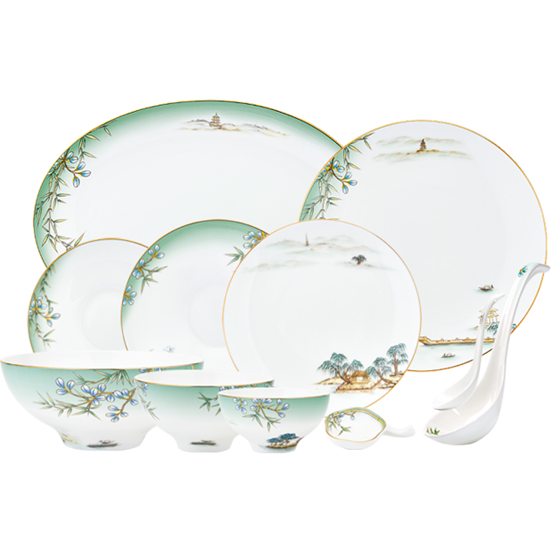Margolonte Bone Porcelain 10 16 Head West Lake Feast for home Dish Spoons Chinese Sketch Cutlery Cutlery Sets Gift Boxes