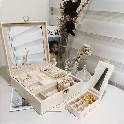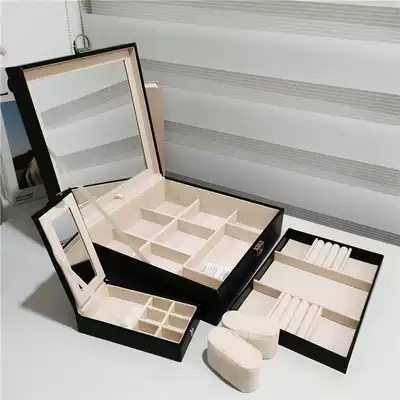 Texture is super good multi-function box Wooden leather ring necklace ear needle jewelry box with lock storage box jewelry box
