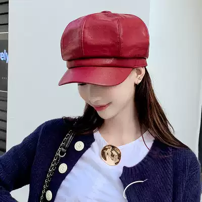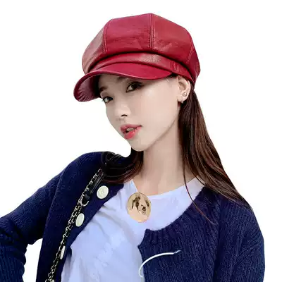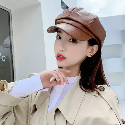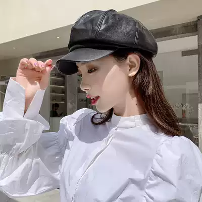 Hat female spring and autumn leather British Navy cap Puppi octagonal hat spring and autumn fashion Korean tide beret