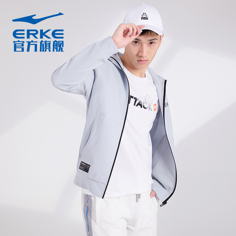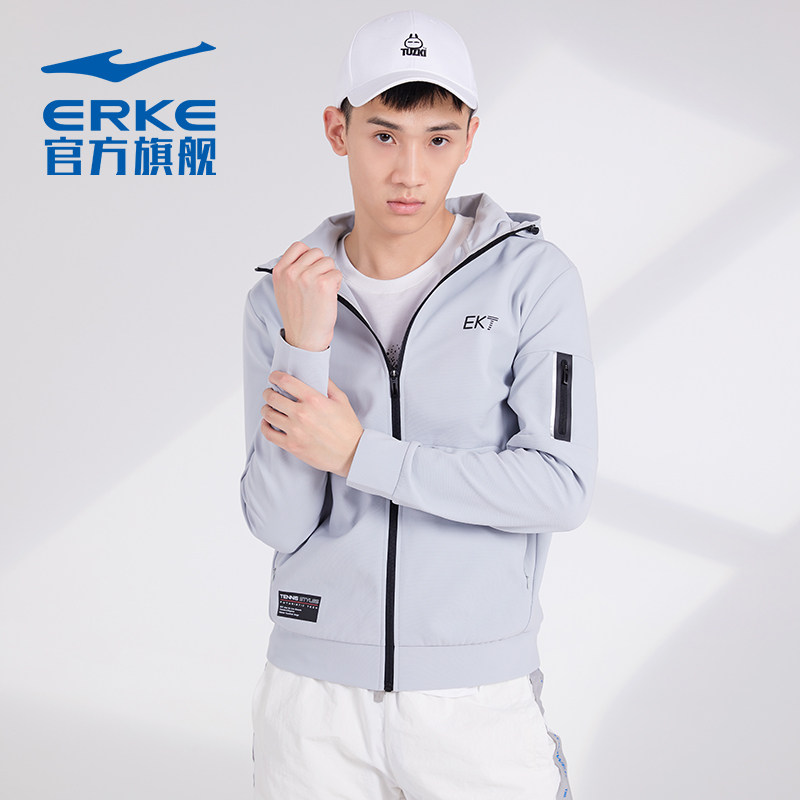Hongxing Erke 2021 spring new men's cardigan thick cotton T comfortable windproof casual sports hooded top
