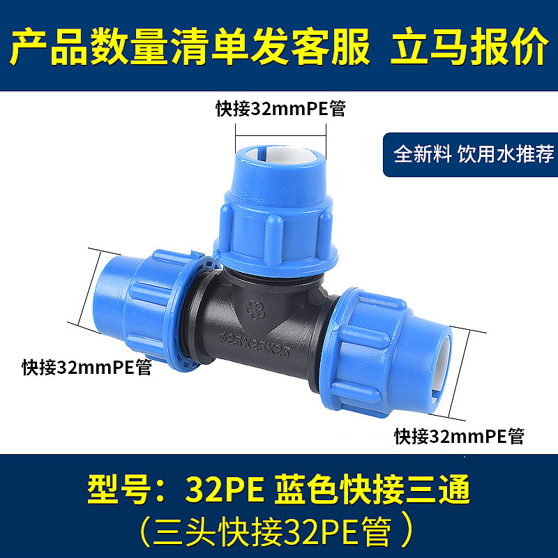 PE pipe quick connector Tap water fittings Hot melt-free movable joint 40 50 63 fast direct elbow Three-way valve