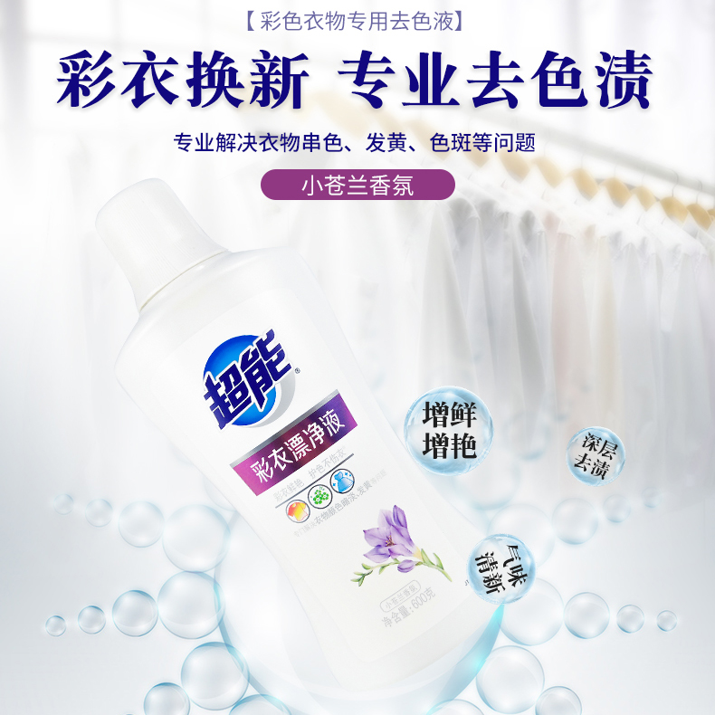 Super color bleach + bleach 600g each 1 bottle of whitening and brightening clothing decontamination and stain removal home affordable packaging