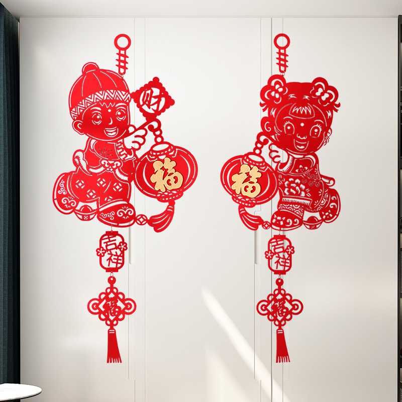 New Year's blessing word into the house couplet pendant Chinese New Year indoor background wall hanging decoration housewarming creative scene decorations