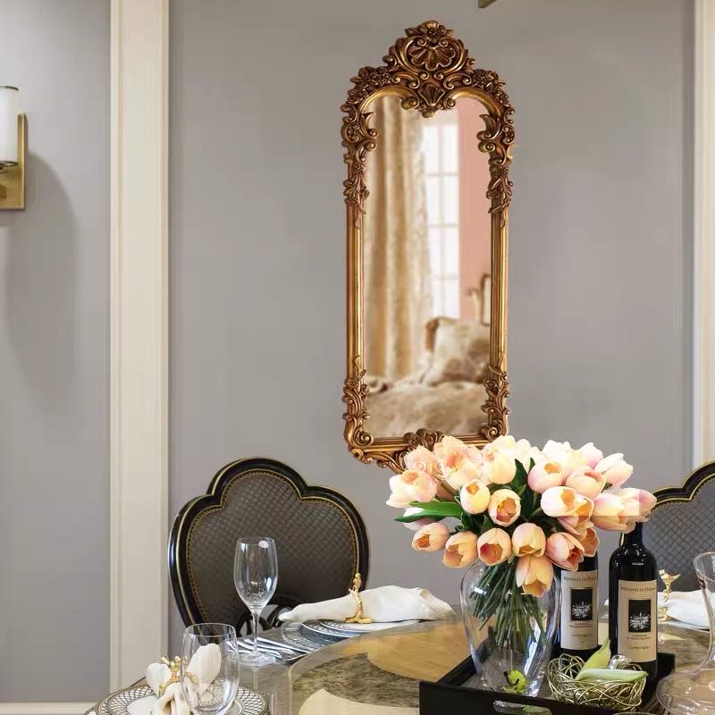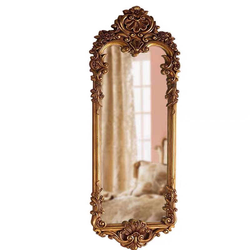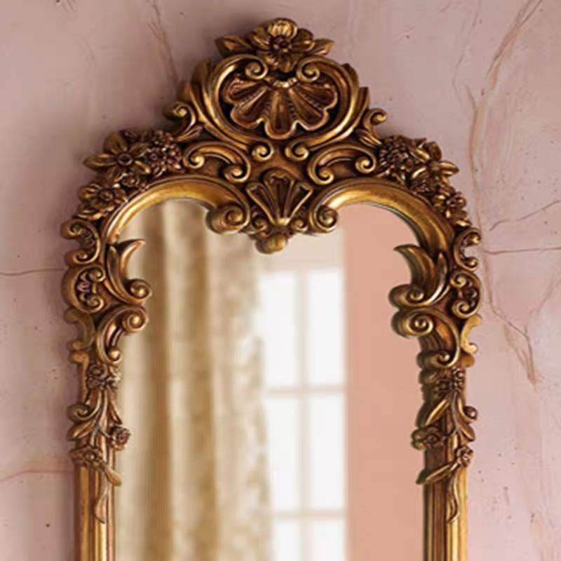 Vigorous Mirror American Wood Sculpture Decorative Mirror Aisle Mirror Palace Court Carved Flowers Wall-mounted Mirror Golden Retro Decorative Mirror