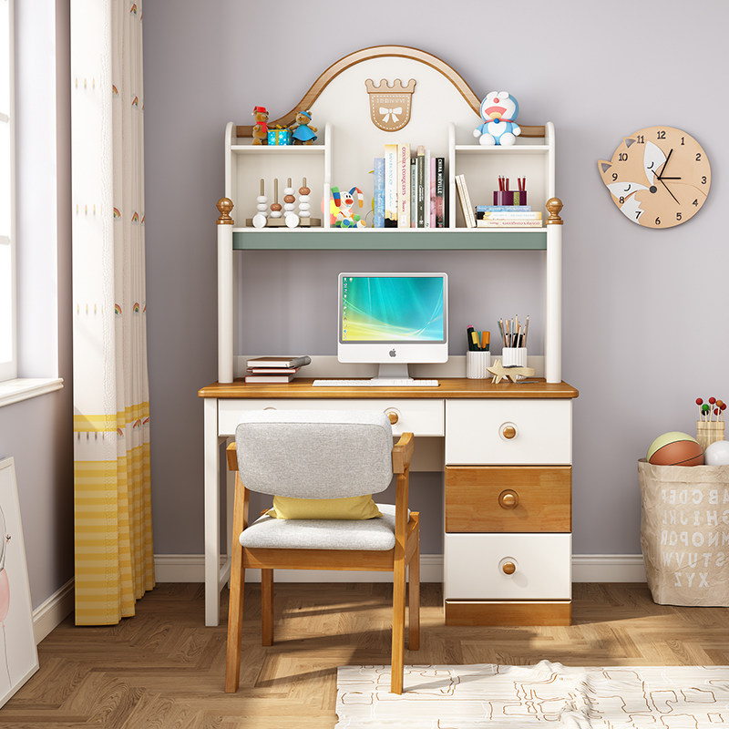 Solid wood desk (without bookshelf) More color customization Contact online customer service Solid wood desk Chair (without bookshelf) Solid wood desk (mung bean color) Solid wood desk (khaki) Solid wood
