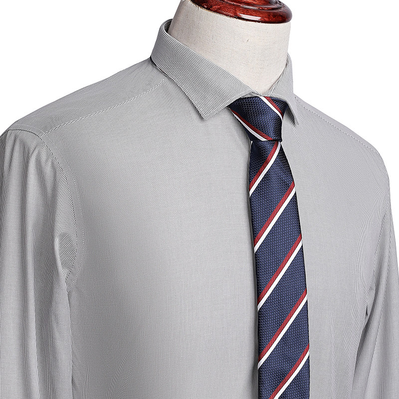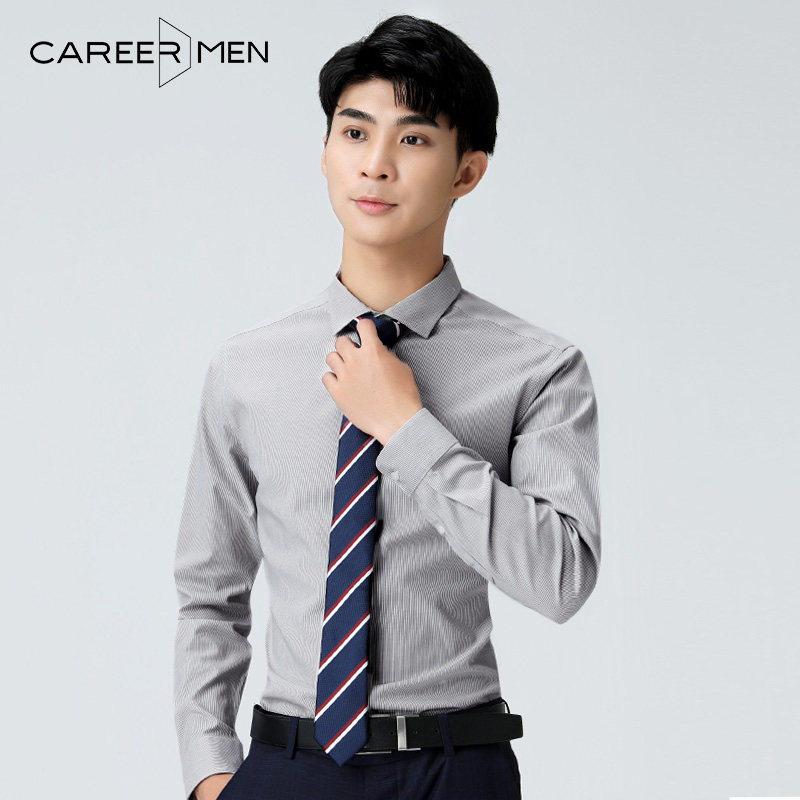 Career door men's long-sleeved shirt DP ready-to-wear free ironing business casual British temperament Gray striped youth shirt