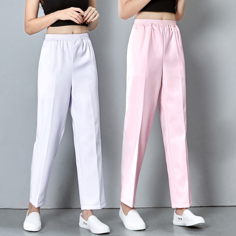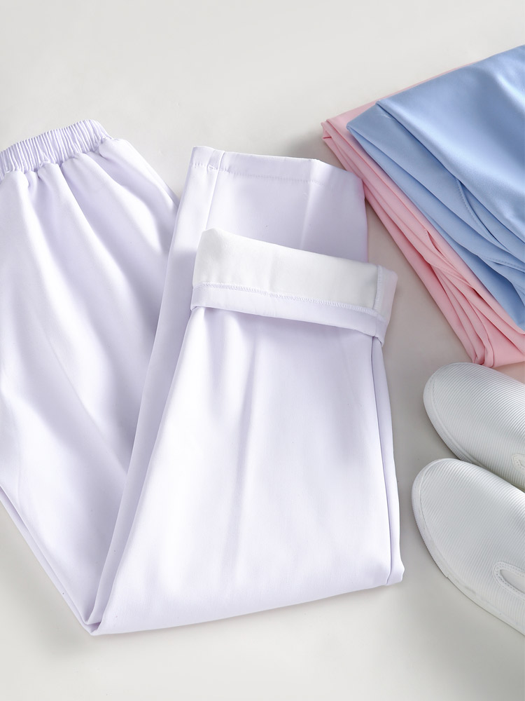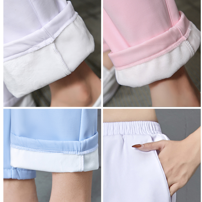 Nurse pants women's winter fleece thickening white blue large size pink elastic waist thick autumn and winter work pants