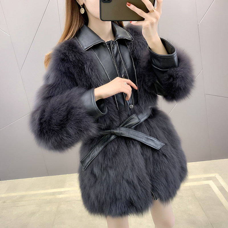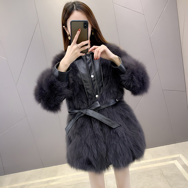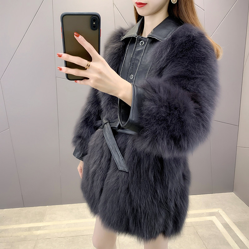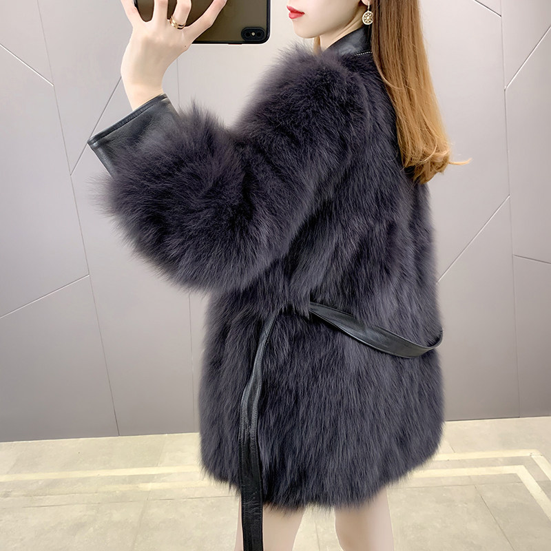 Fox fur coat women's mid-length 2020 new fashion young Haining fur coat belt