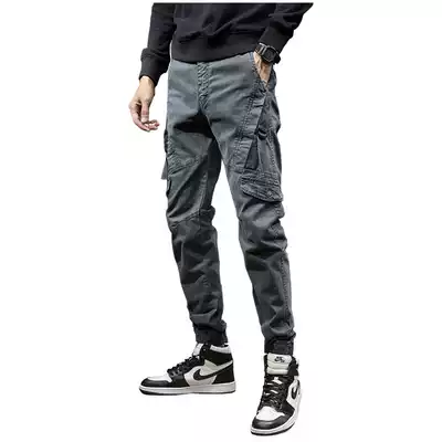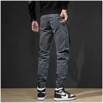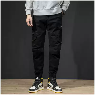 Kurashi Yishu tide brand tie-foot overalls men's spring and summer trend Korean version of slim cigarette tube pants men's casual pants