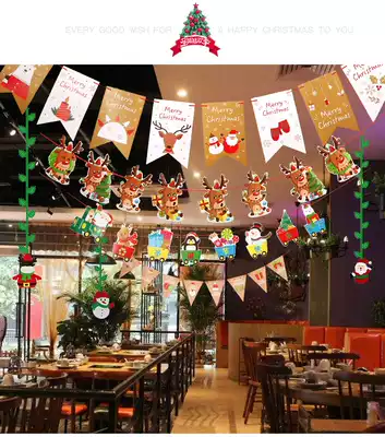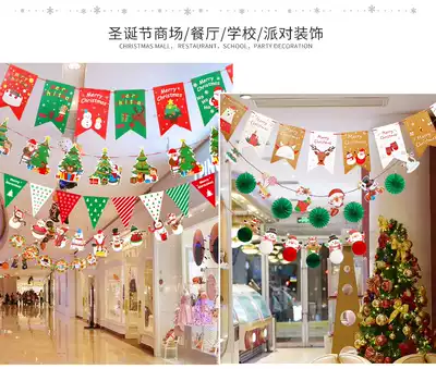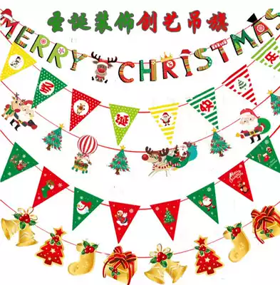 Christmas decorations pennant flag flag hanging mall store kindergarten hanging decoration scene layout pull flag paper color flag