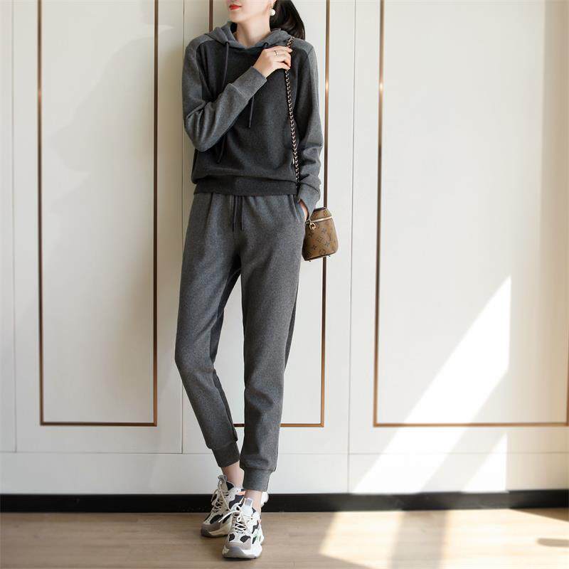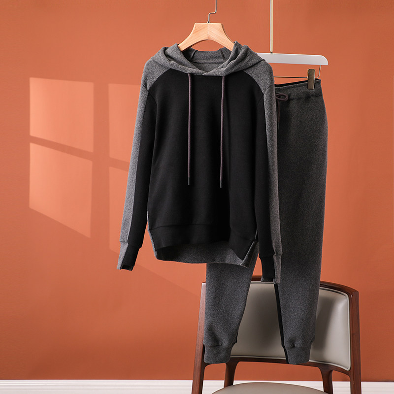 Advanced Fashion Minus Age Sports Suit Women 2022 Early Spring New Collision Color Splicing Sweatpants With Cap Sports Jersey Two Sets