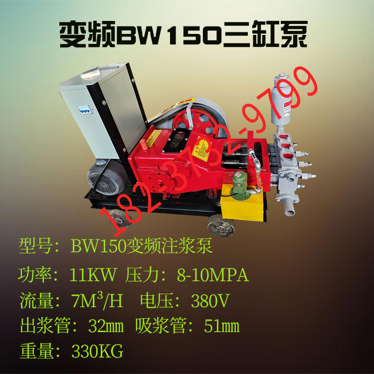 BW150 frequency conversion grouting pump horizontal three-cylinder mud pump large flow high-pressure cement grouting machine small mortar pump