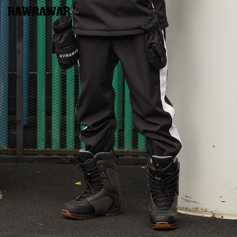 Men's and women's ski pants thin version Korean veneer double-board warm foot beam soft shell plus velvet ski pants waterproof and wear-resistant