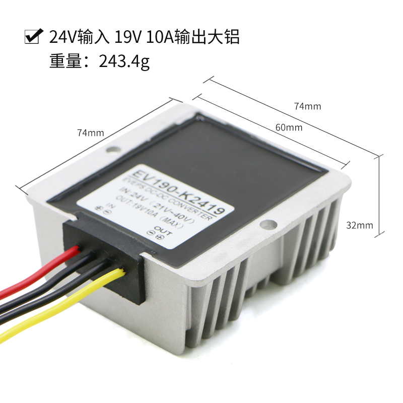 24V input 19V 10A output Large aluminum 24V input 8 4V 10A output large aluminum 24V input 12V 10A output Medium plastic 12V input 19V