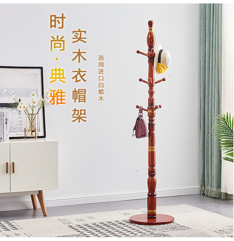 Solid wood floor clothes rack minimalist wood hanging clothes hanger home single lever style cloister frame living room hanging bag rack large hanger