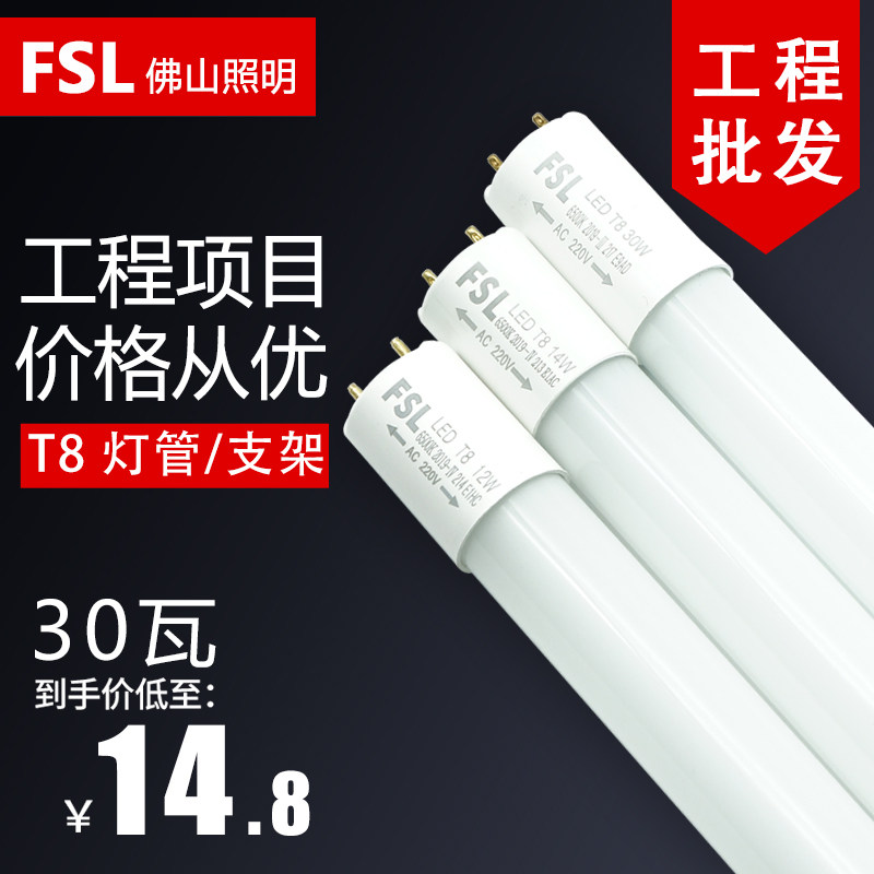 Foshan Lighting t8LED tube strip super bright full set 1 2 m 30W0 6 m household fluorescent tube bracket 16