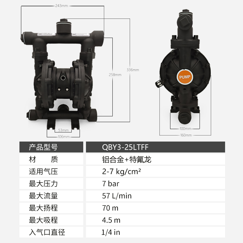 QBY3-20 Aluminum alloy body Teflon diaphragm QBY3-25 Aluminum alloy body Teflon diaphragm QBY3-25A aluminum alloy body Tefloron diaphragm QBY3-25A aluminum alloy body Teflon diaphragm
