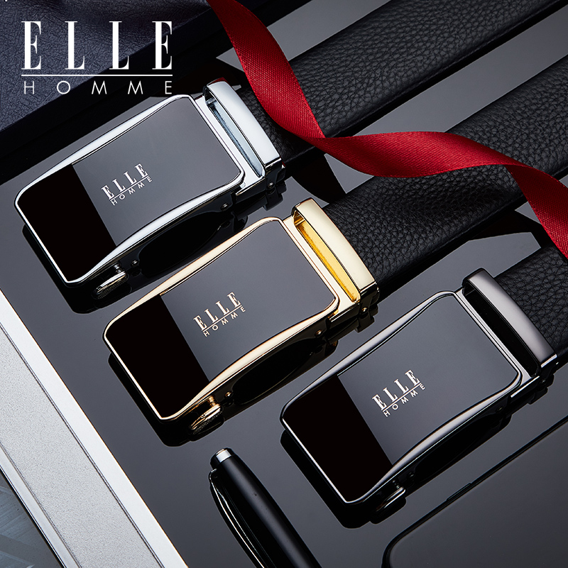 French ELLE HOMME men's belt leather belt men's automatic buckle pure cowhide belt top ten brand trends