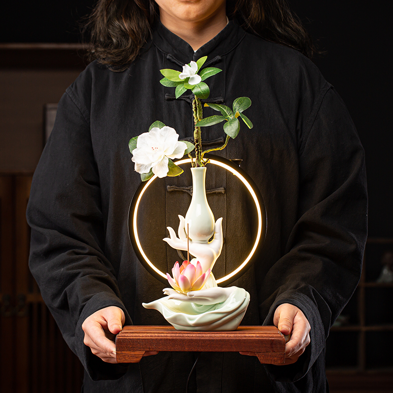 Backflow incense burner creative decoration ceramic bergamot lotus Chinese style agarwood sandalwood living room office desktop aromatherapy