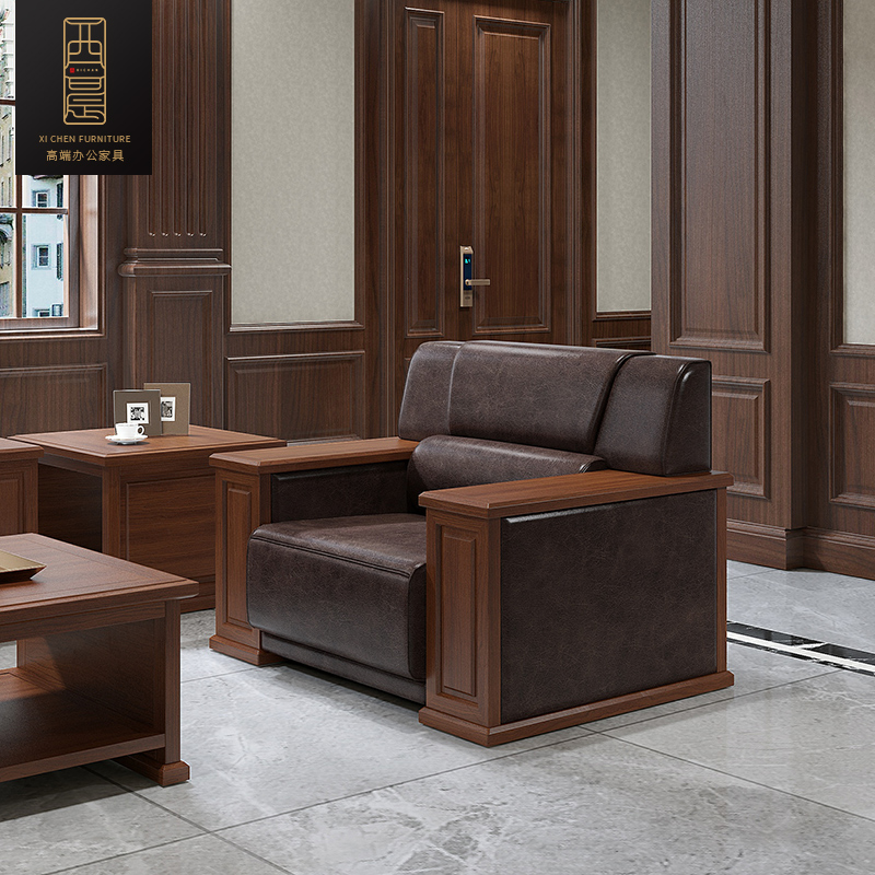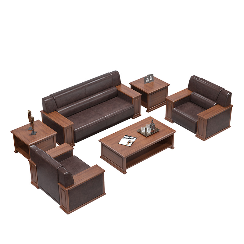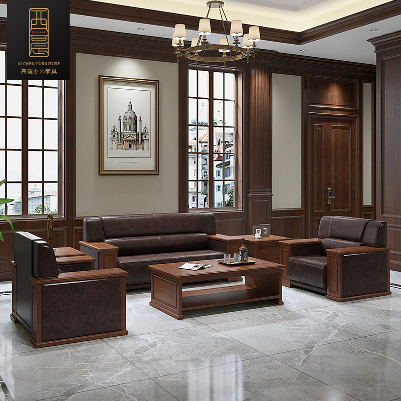Office reception room sofa leather new Chinese trio office sofa coffee table combination business reception sofa