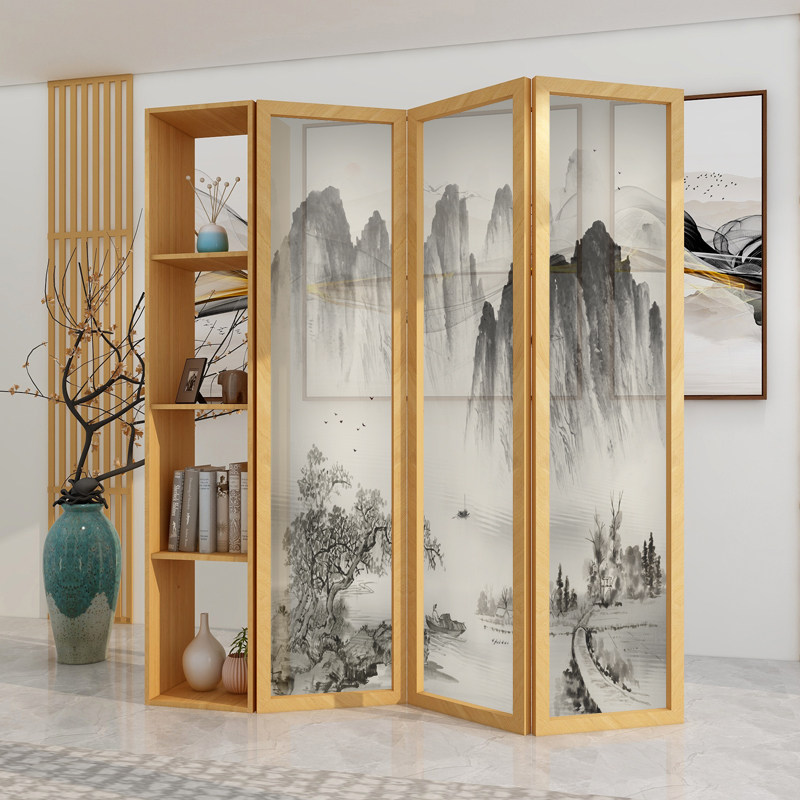 Chinese-style solid wood folding mobile entry hall cabinet screen partition wall living room simple modern office shelves