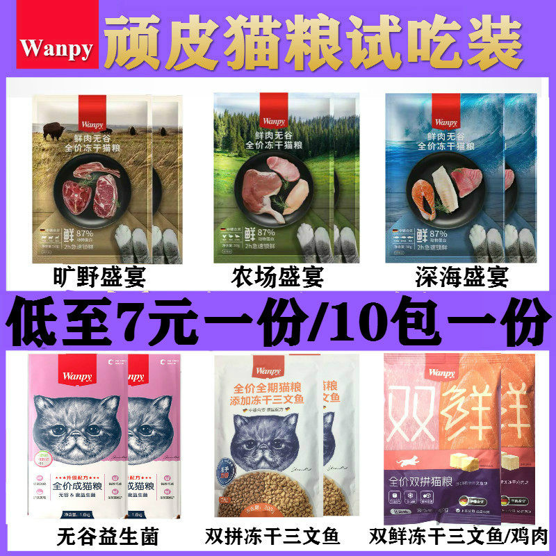 Naughty fresh meat grain-free adult cat kitten fattening freeze-dried nutrition double-spell full-price cat food trial pack stray cat trial pack