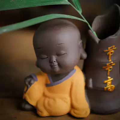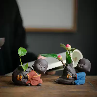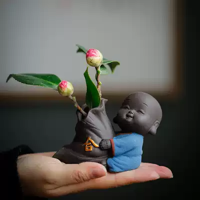 Creative golden ge flower arrangement hydroponic little monk tea pet decoration Purple sand can raise tea ceremony accessories Tea table tea set decoration