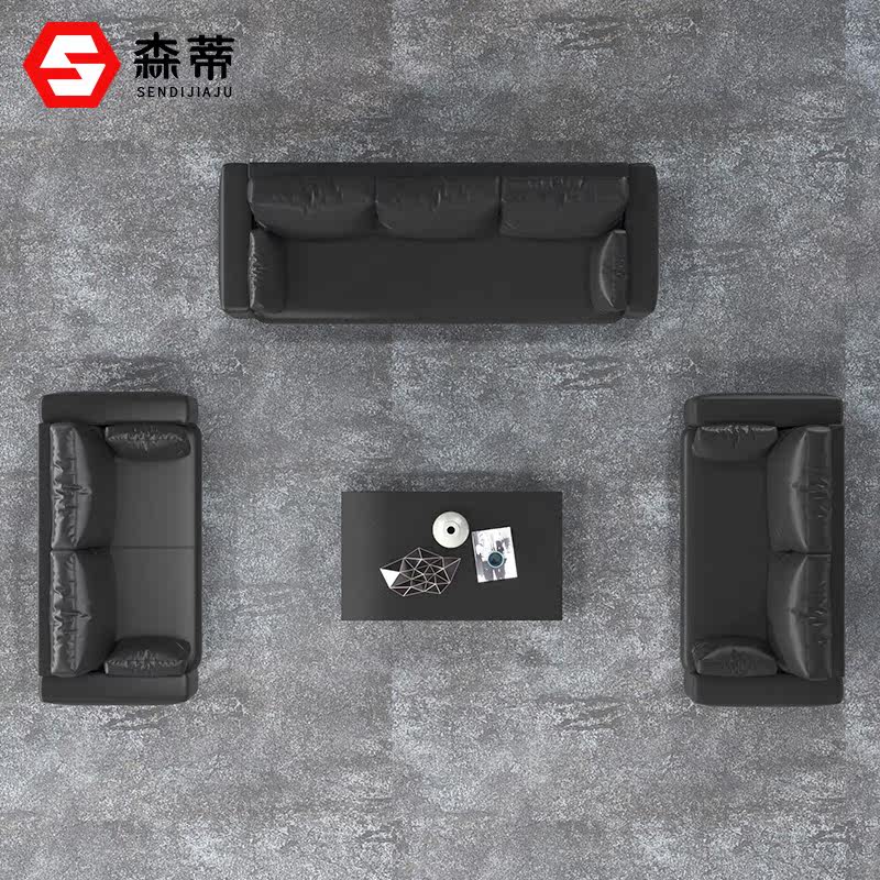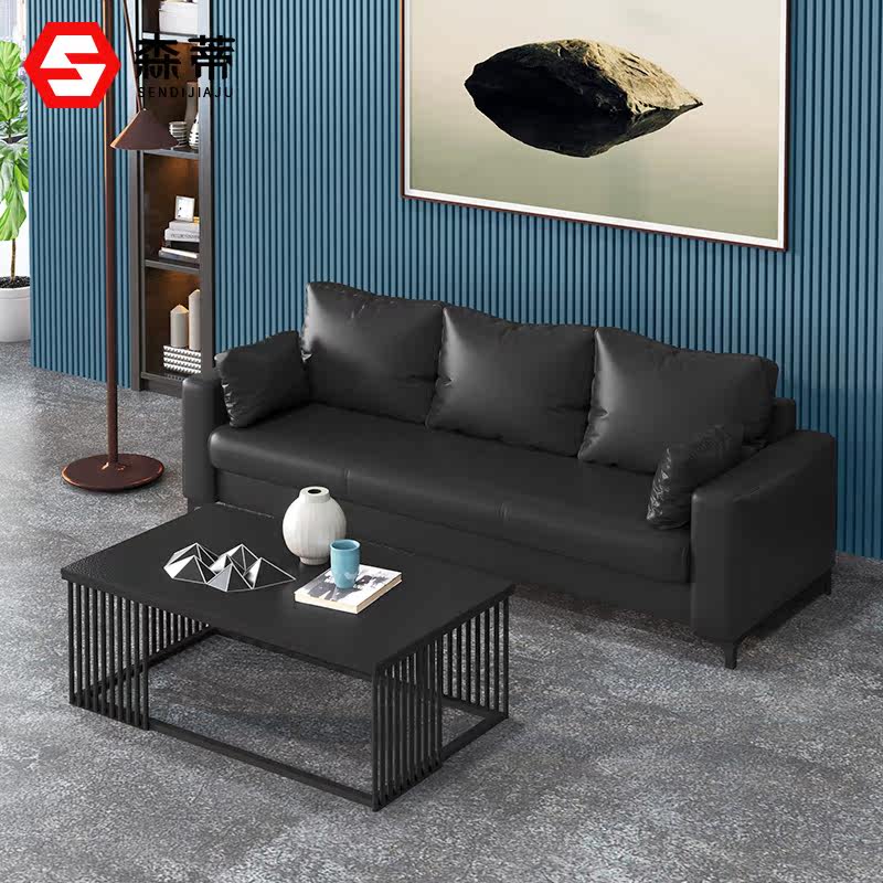 Modern Minimalist Office Sofa Business Hospitality guests in talks for trio Bull Leather Office Sofa Tea Table Combinations