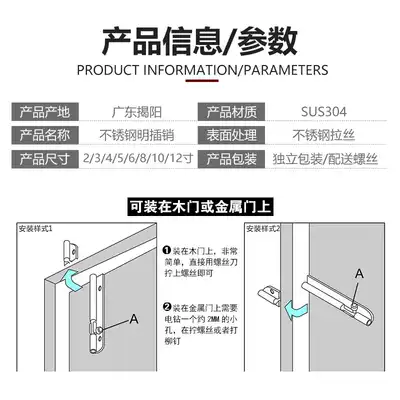 Stainless steel latch door bolt door clasp wooden door window lock 304 thickened open door small latch cosmetic room anti-theft latch