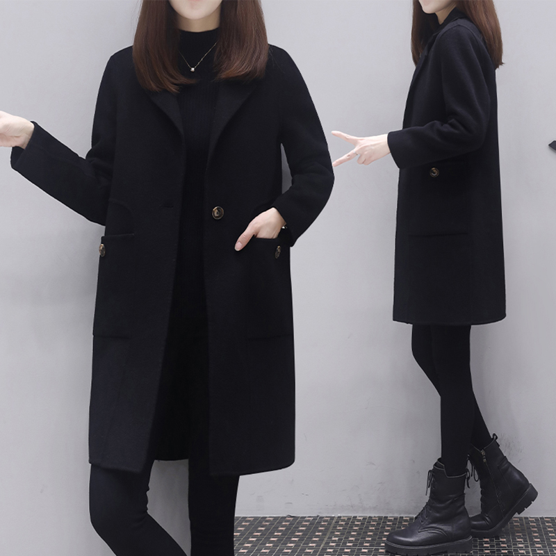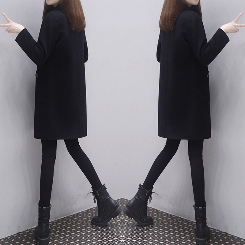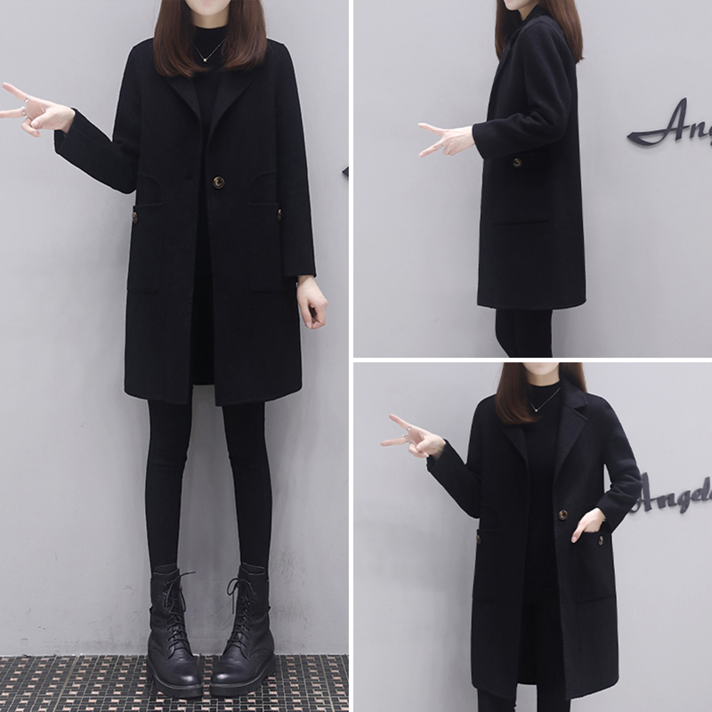 Double-sided cashmere coat women's autumn and winter 2022 new Korean version loose and thin large size temperament black woolen coat