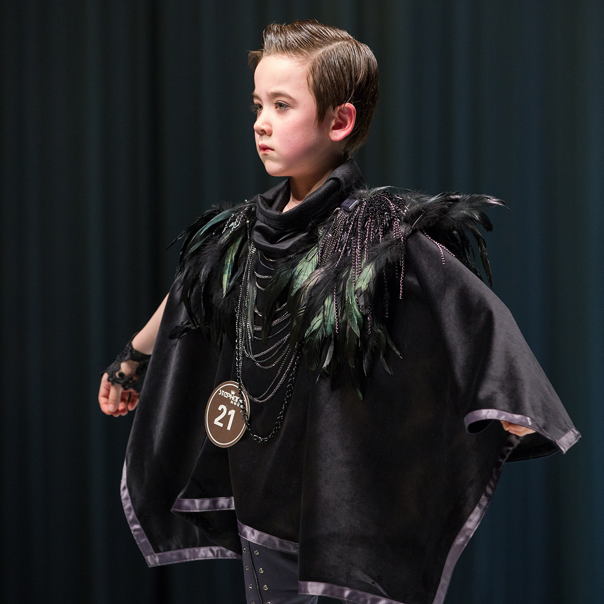 Le Wenxi's new 11-year-old Class B cloak T-stage catwalk performance dress spring, autumn and winter Gothic cloak performance clothing teenager