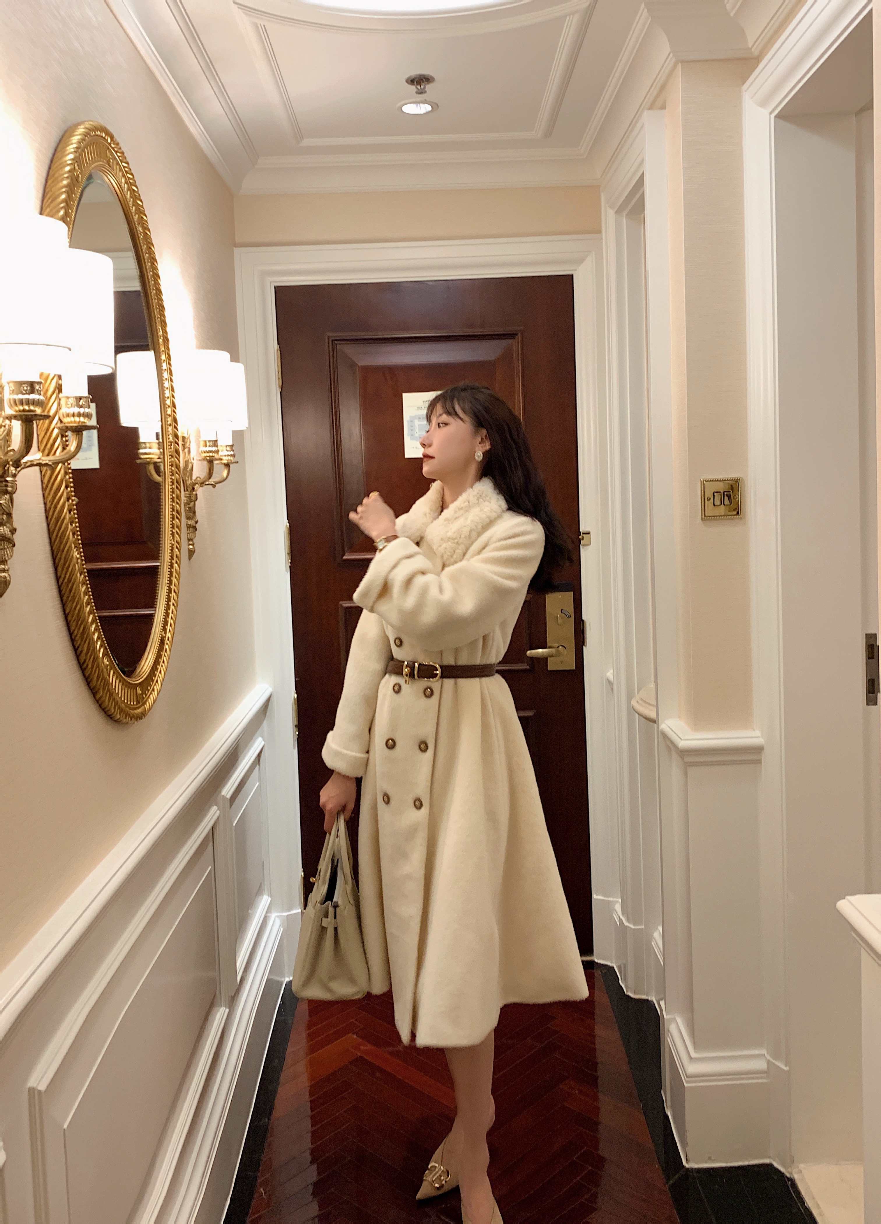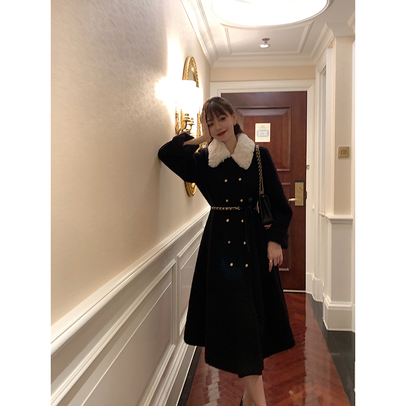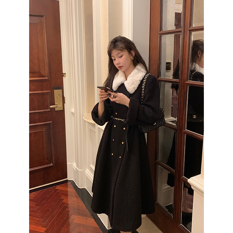 Haze grass French retro coat 2020 mid - long - edition waist coat coat famous character